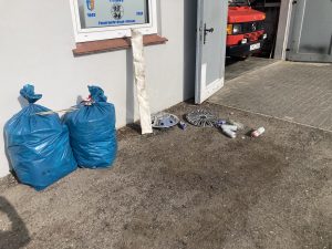Glücklicherweise war die Ausbeute in diesem Jahr nicht so hoch.Zwei Müllsäcke, ein Schränkchen und ein paar Flaschen.